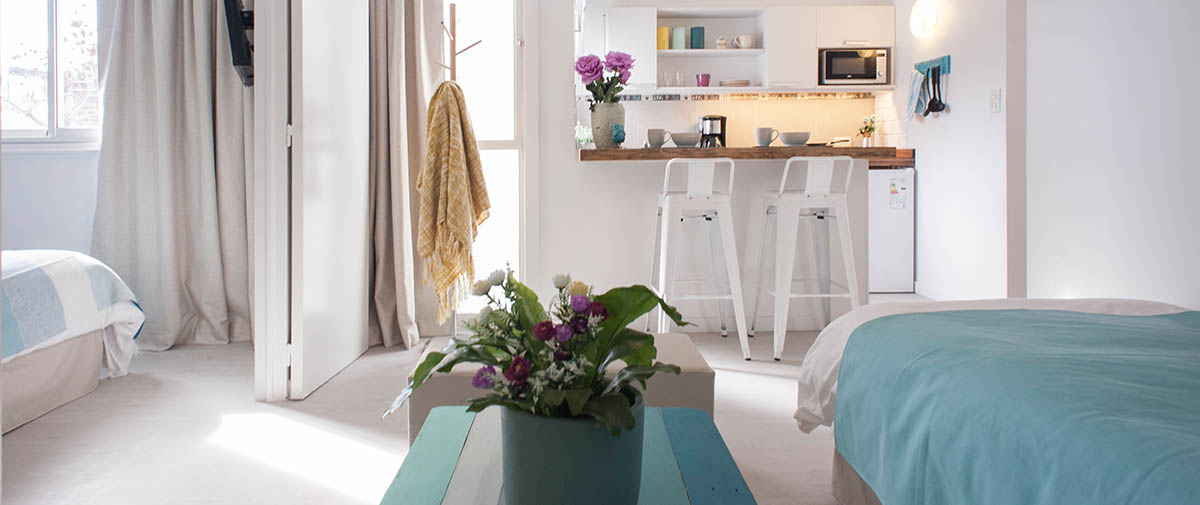 Tenemos cómodos departamentos dobles, triples y cuádruples en un ambiente tranquilo y seguro para asegurar el descanso y disfrute de nuestros huéspedes.